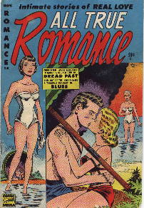 DATE: March 1953 STORY TITLE: "Gang Girl" STORY PLOT: - This is NOT, repeat, NOT a reefer madness story. It is however, a good example of how an Internet auctioneer can drum up business. Despite the sales description: "Classic headlights cover, hypo panel, marijuana + drug use panels in 'Gang Girl': "Enjoying yourself, baby? Here take a drag on this! It'll pep you up! It's got a kick like nothing else! Ha, ha, ha." - But other than that one panel -- nothing -- no actual mention of medical marihuana. CHARACTURES: - Generic charactures, girl, boy etc. FOOTNOTES: [1]- Not recommend for reading Publisher: Harwell Publictions, Inc., 500 Fifth Ave., New York, N.Y. ALL TRUE ROMANCE #14 [SEE MORE]