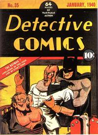 DATE: 1964 - Reprint STORY TITLE: "Sorry, No Cigarette Today" STORY PLOT: Teen-age crime fighter “Yankee Boy” battles the “Reefer King” in a story titled “Sorry - No Cigarettes Today.” The plot involves: -- A Cigarette salesman, talked into using his shop to sell reefers. -- A young boy (after smoking a reefer) becomes a robber. -- A kindly police officer (the kind that gives candy to lost children) guards over a schoolyard. OK, one gets the picture. Must reading. CHARACTURES: Yankee Boy FOOTNOTES: [1]- reprint (1964) of DYNAMIC COMICS #16-(different cover). Publisher: Super Comics, Inc., 62 West 47 St., New York 36, N.Y. DETECTIVE COMICS #35