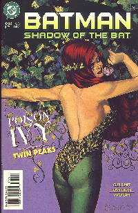 DATE: Oct 1996 STORY TITLE: "Leaves of Grass #1 -Twin Peaks" STORY PLOT: A Mysterious Supplier Of Genetically-Enhanced MARIJUANA Triggers A Drug War In Gotham. Meanwhile, Poison Ivy Is Released From Arkham By Mercenaries Holly Wood And Eva Green. At School, Tim Drake Deals With Marijuana Use Among His Friends. CHARACTURES: Poison Ivy, Batman BATMAN: SHADOW OF THE BAT #57
